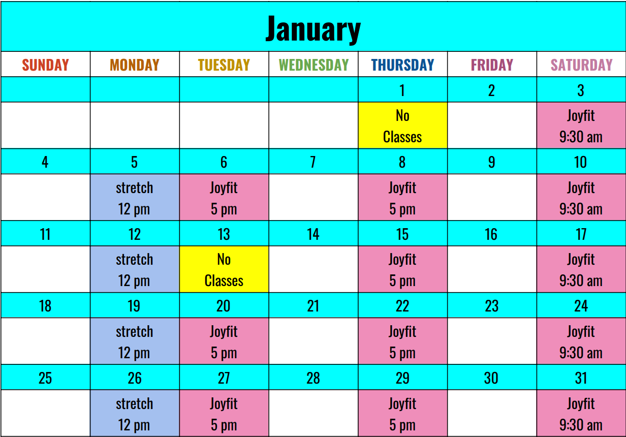 JoyFit is a high intensity Cardio Fitness Dance Aerobics-ish Dance Class. Basically it is an hour of Joy! We have students ages 12 to 80 who attend and love class. The class is loud, fast, fun, emotional, freeing, hard and most importantly JOYFUL! JoyFit regulars all agree that it takes a class or two before you feel like you can follow along the whole time but that is exactly why this fitness class is different then all that have come before it. The dances are choreographed and tend to lean towards the dancier side of fitness, however, so many people come for that hour and follow along when they want to or make up their own moves and creative sweaty dance fun if what we are doing isn’t their thing. JoyFit gives a workout physically, of course, but also mentally, emotionally and most importantly, spiritually.